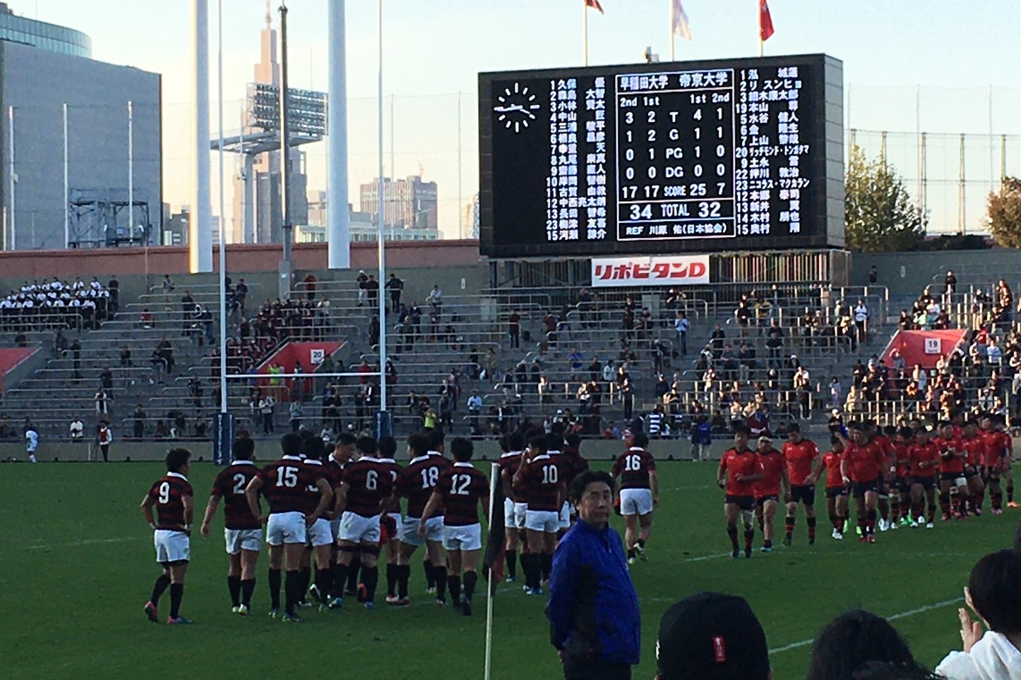 11月10日のラグビー帝京戦、9年ぶりの勝利です、監督の子供の相良もトライ、齋藤の逆転ジャンプトライが凄かった。