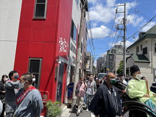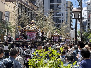 | 久々に三社祭りに神輿がでると発表されたので5月22日浅草へ行ってきました。実際には神輿を担ぐのは宮出し宮入りだけで、後は台車に載せて巡行する方式です。 ![]() 但し滅多に見られない風景として三基の本神輿がならぶ姿を見る事ができました ![]() 左側の赤い建物はアニマル浜口ジムです、みんな気合いが入ります。 ![]()