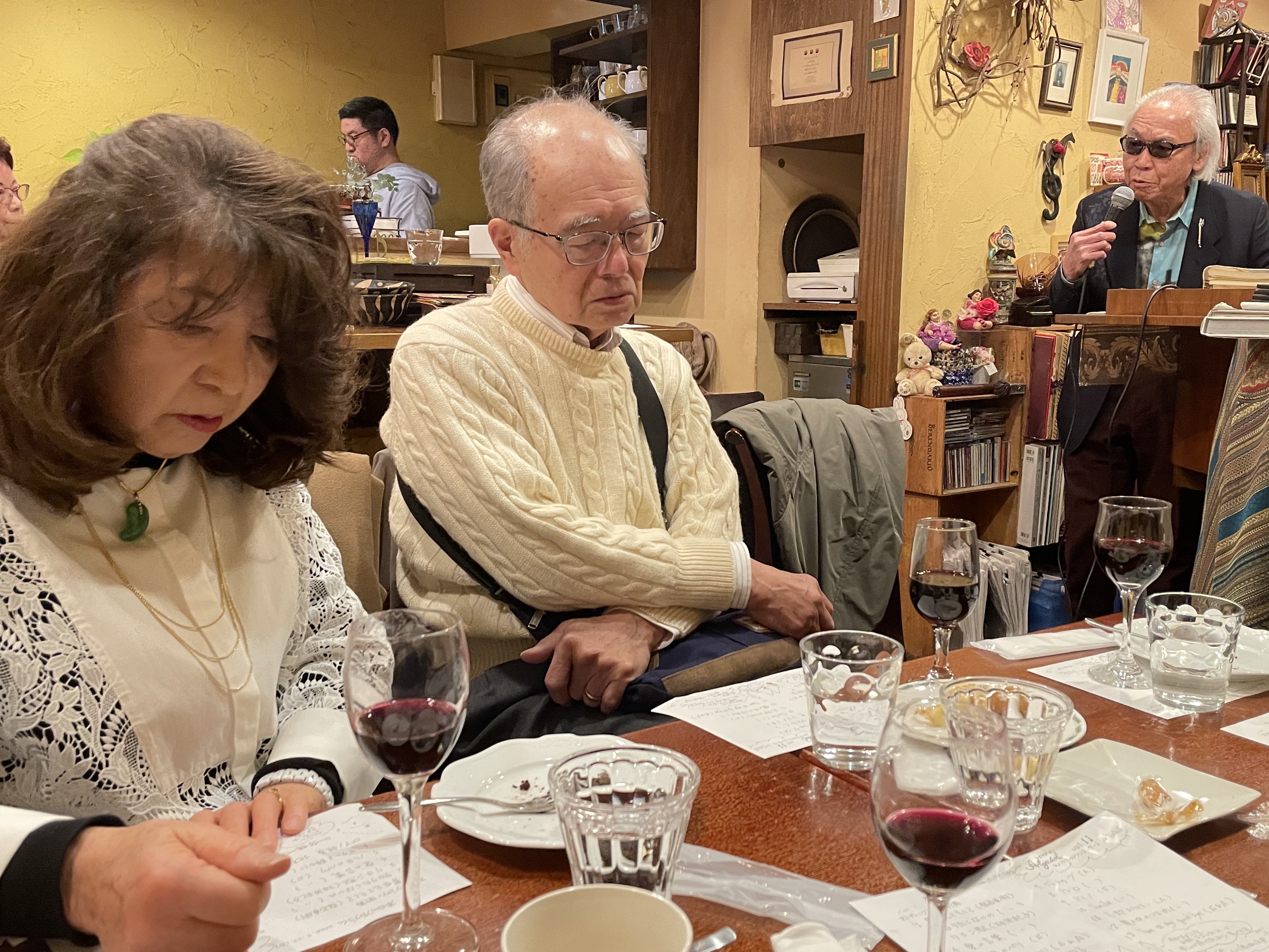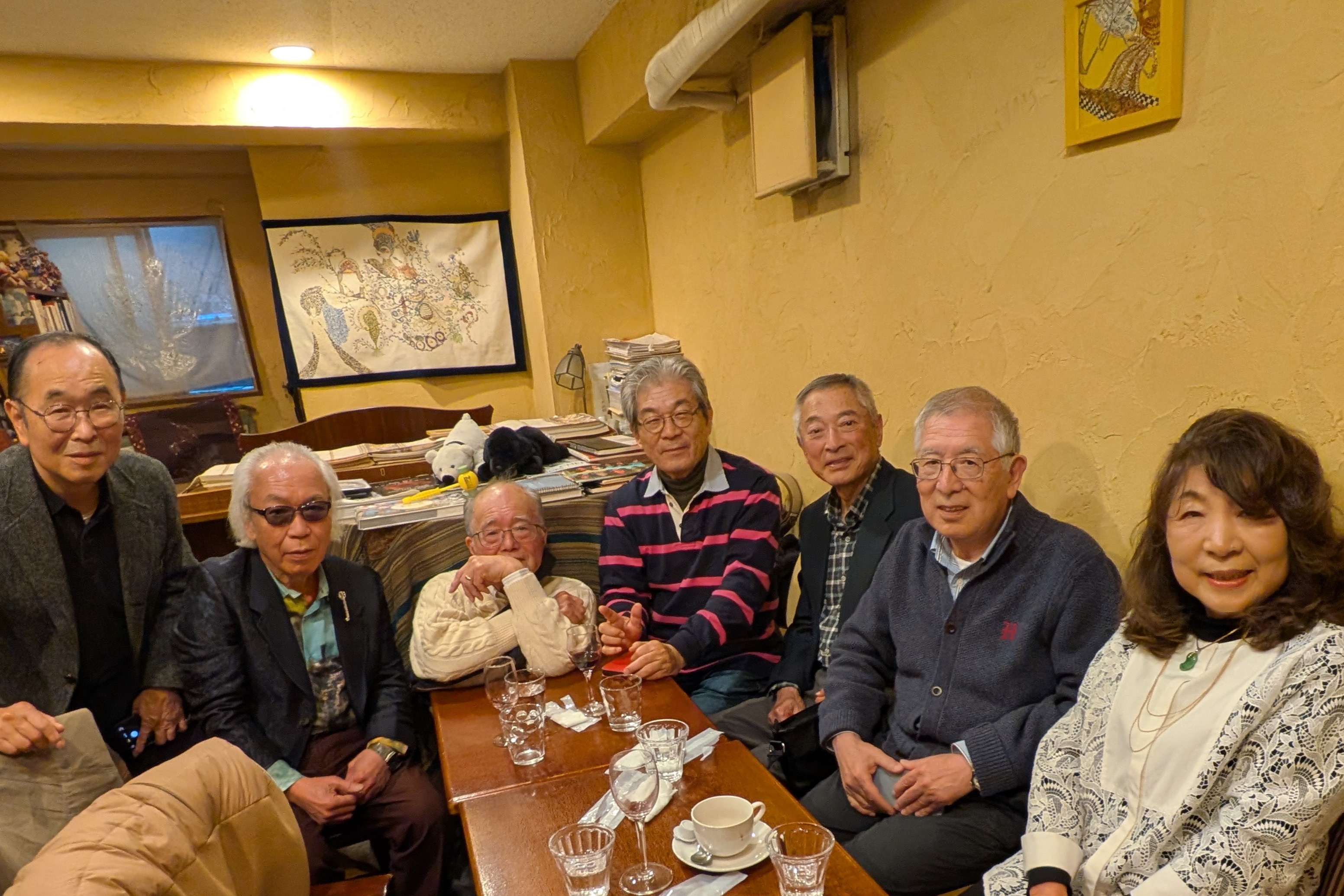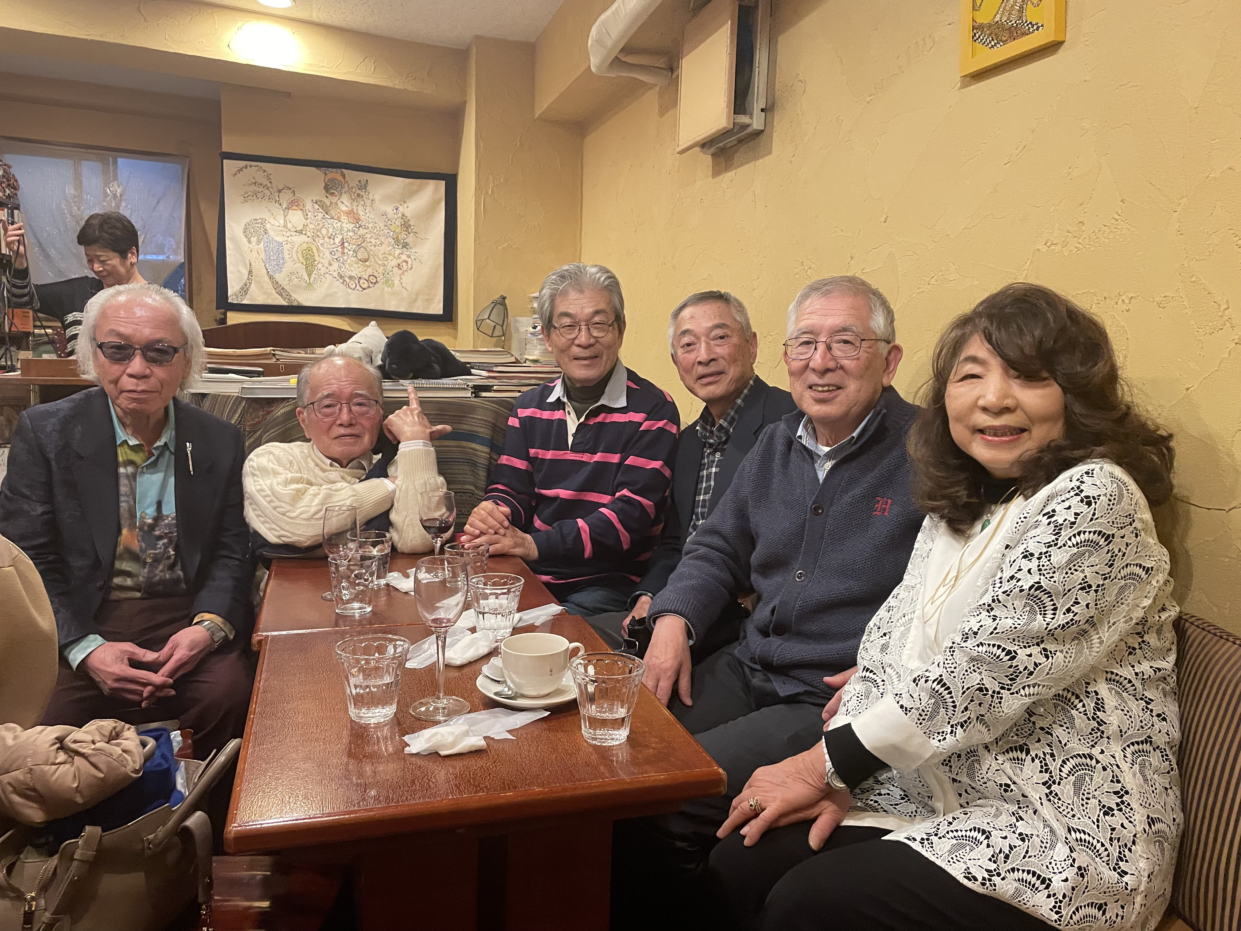 ![]() 照山さんと小出さんも聞き惚れています。 6名+宿谷さんで集合写真です。 ![]() お開きは皆で「オーシャンゼリゼ」を歌いまるでシャンソン喫茶でした。 笠井敏晴 1972年教育卒 (流山市在住) |