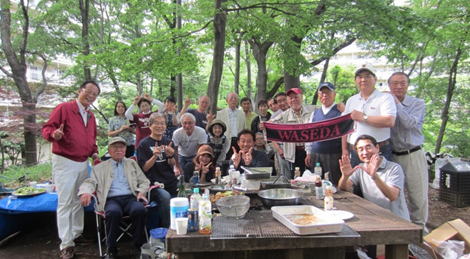 本年も朝倉さんお住まい「サンシティマンション内のBBQガーデン」で稲門会のBBQパーティーが