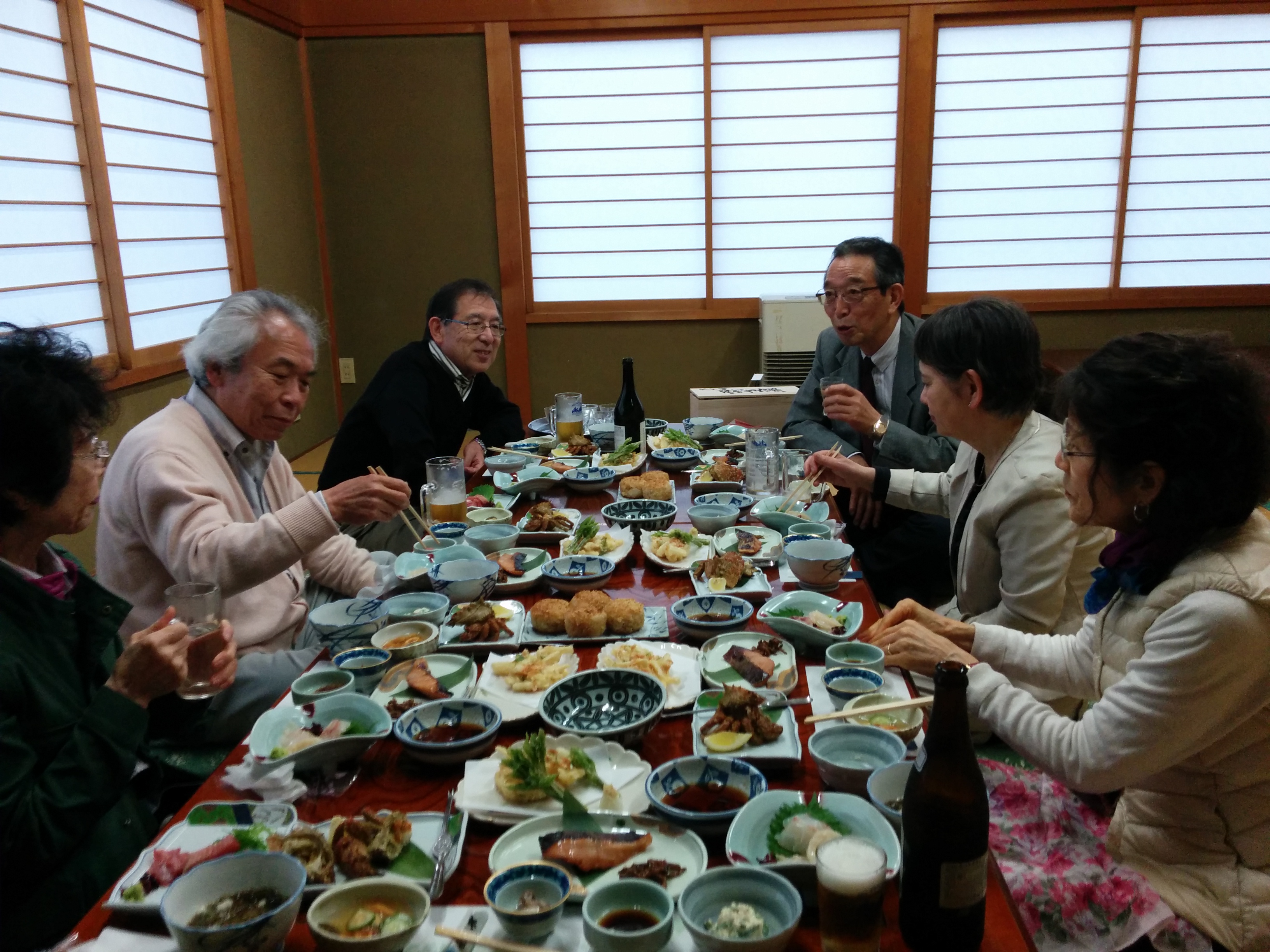 ※地元に住む同級生中村さんと再会(左端)みんなで 高橋家(築270年、藩御用達の米 問屋です)を見学しました。![]() 黒石酒造を訪問(試飲で出来上がる?) ![]() 夜は黒石の郷土料理屋『船水』で地元の食材のみの料理が食べきれないほど出てきました。大間のマグロと極上地酒は地元OGの中村さん差し入れでした、中村さんありがとうございました。 ![]() 中井 徹(新宿区在住) |