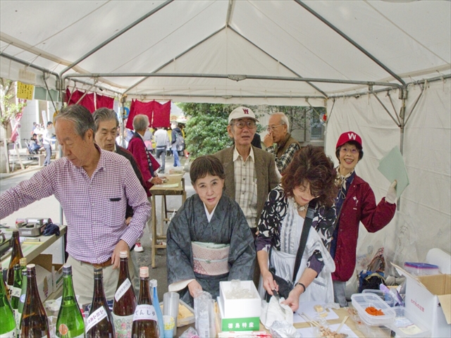 さらに、目の前に競合店が出ていて心配しましたが日本酒の瓶を並べた事が大当たり。 銘柄によっては午前中に売り切れた日本酒(獺祭)もありました。焼きもちも売れに売れ焼くのが間に合いませんでした。 午後からは日差しがきつく日本酒がぬるくならないかと心配でしたが、売り上げはほぼ予定通りであり目標を達成いたしました。 来年もまた模擬店をだしましょう、仕入れから機材まで準備いただいた小出さん、本当にご苦労さまでした。 どこの校友の模擬店か分からなかったとのご意見が多くありましたので来年は『1972年次稲門会』などの看板か旗を出す事も検討したらどうでしょう。 笠井敏晴(流山市在住) |